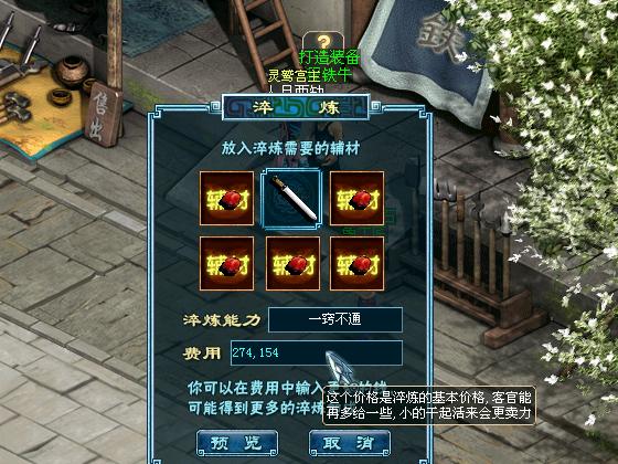 当玩家打造好武器之后,可以继续在npc程铁牛这里进行“淬炼”来大幅提高武器和装备的水平。